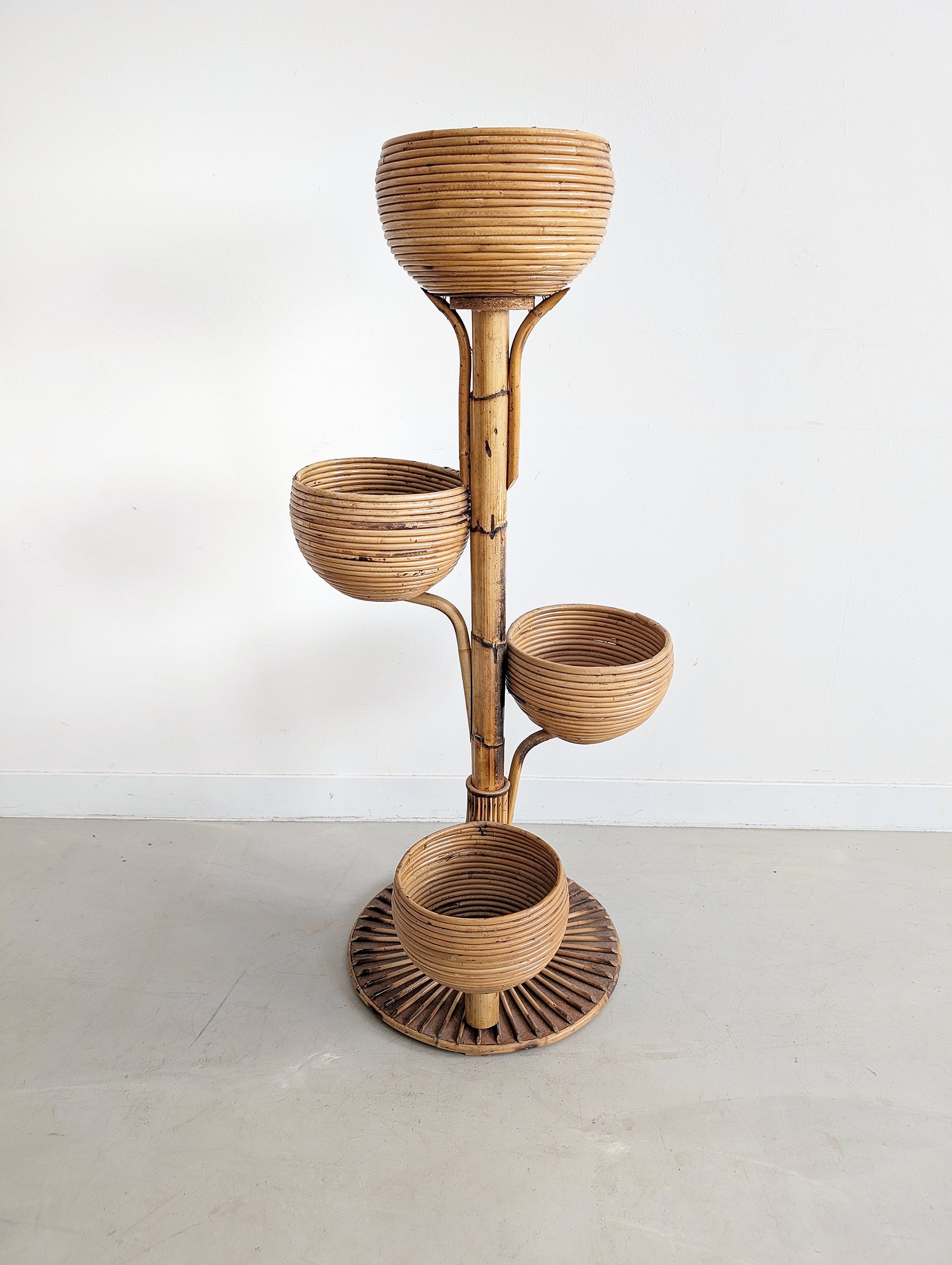 French bamboo and rattan plant stand. Fits up to 4 plants.