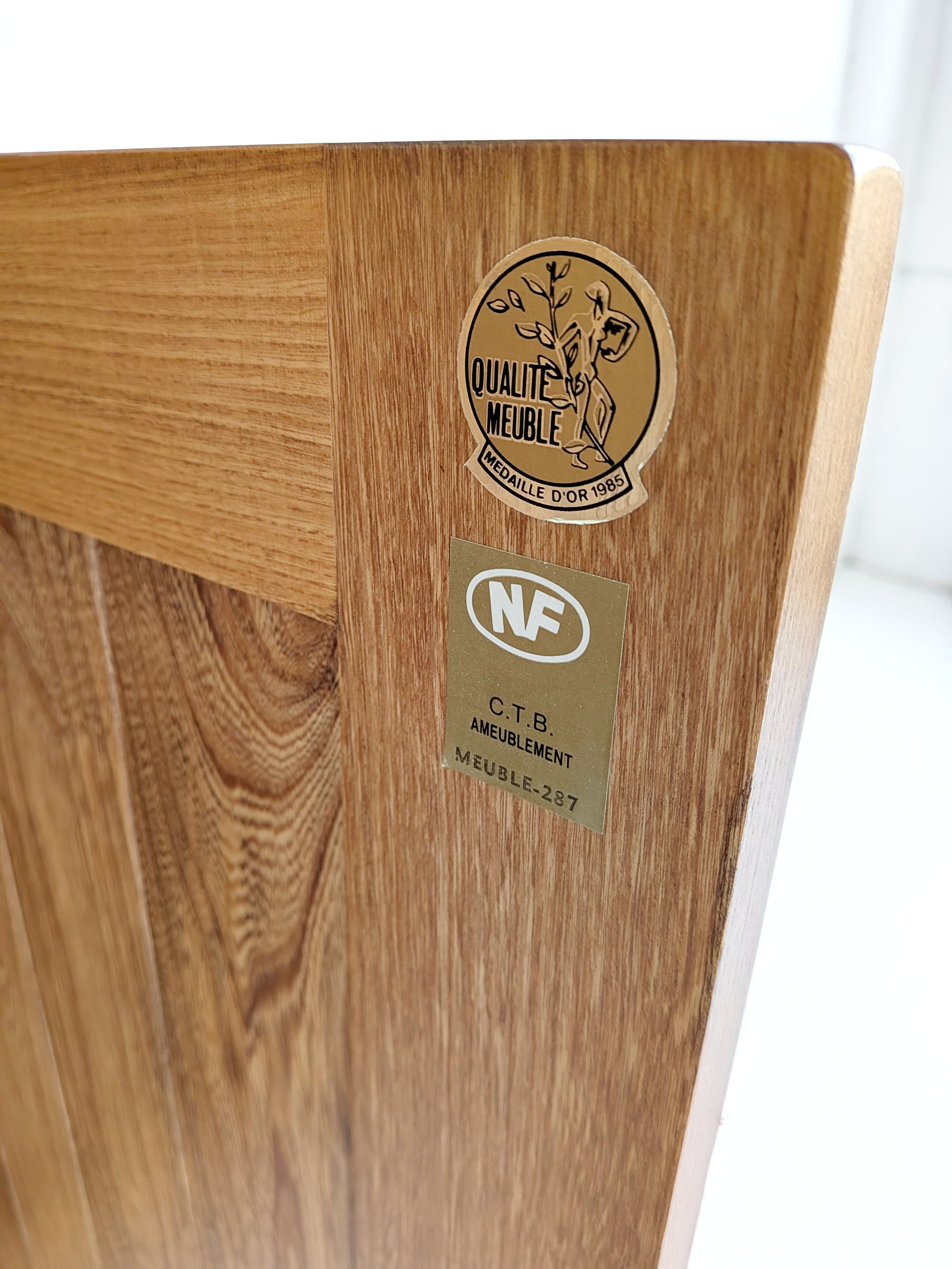 French elm wood sideboard in the style of Maison Regain. The dresser features 3 doors and 2 removable shelves.