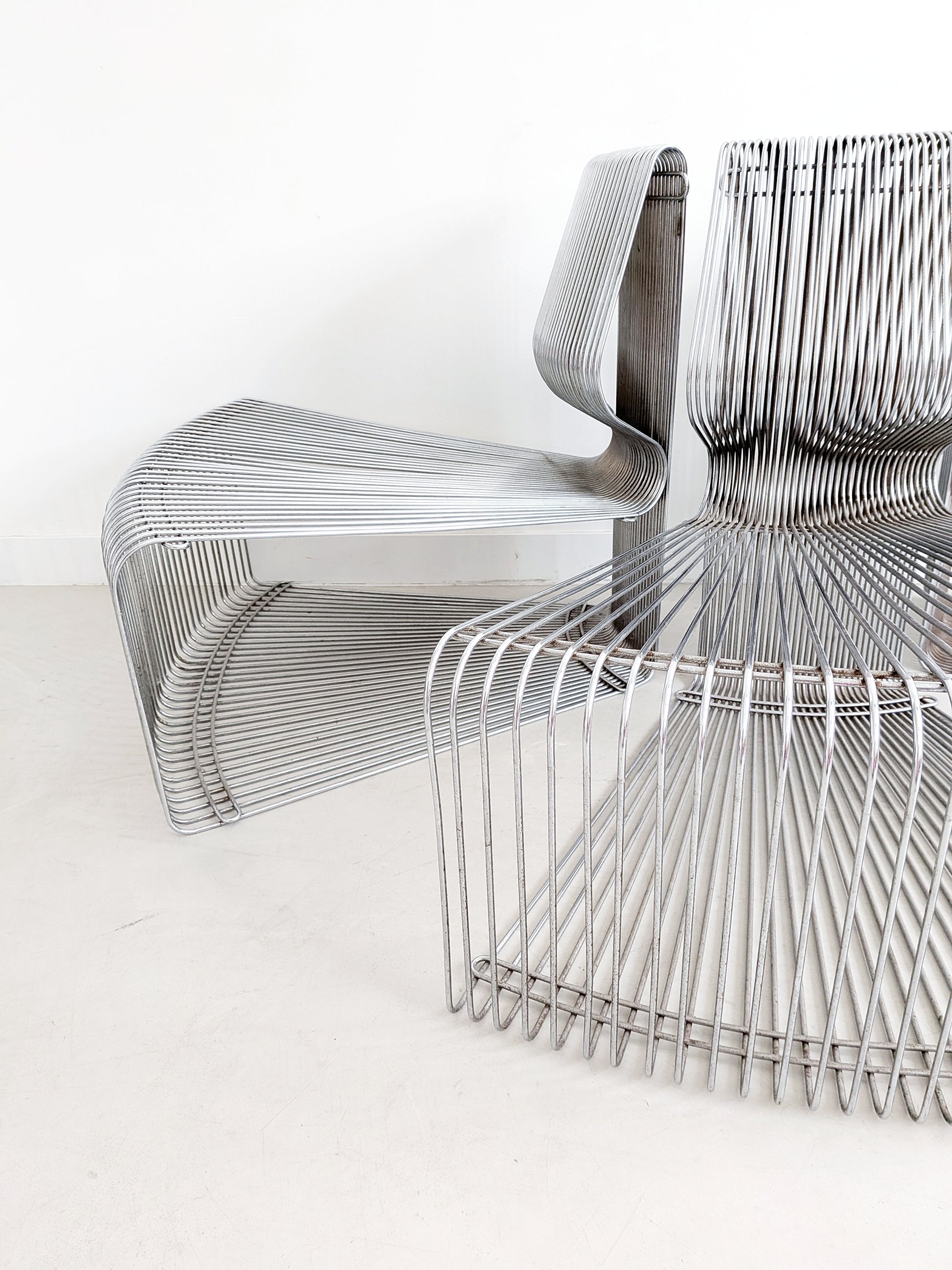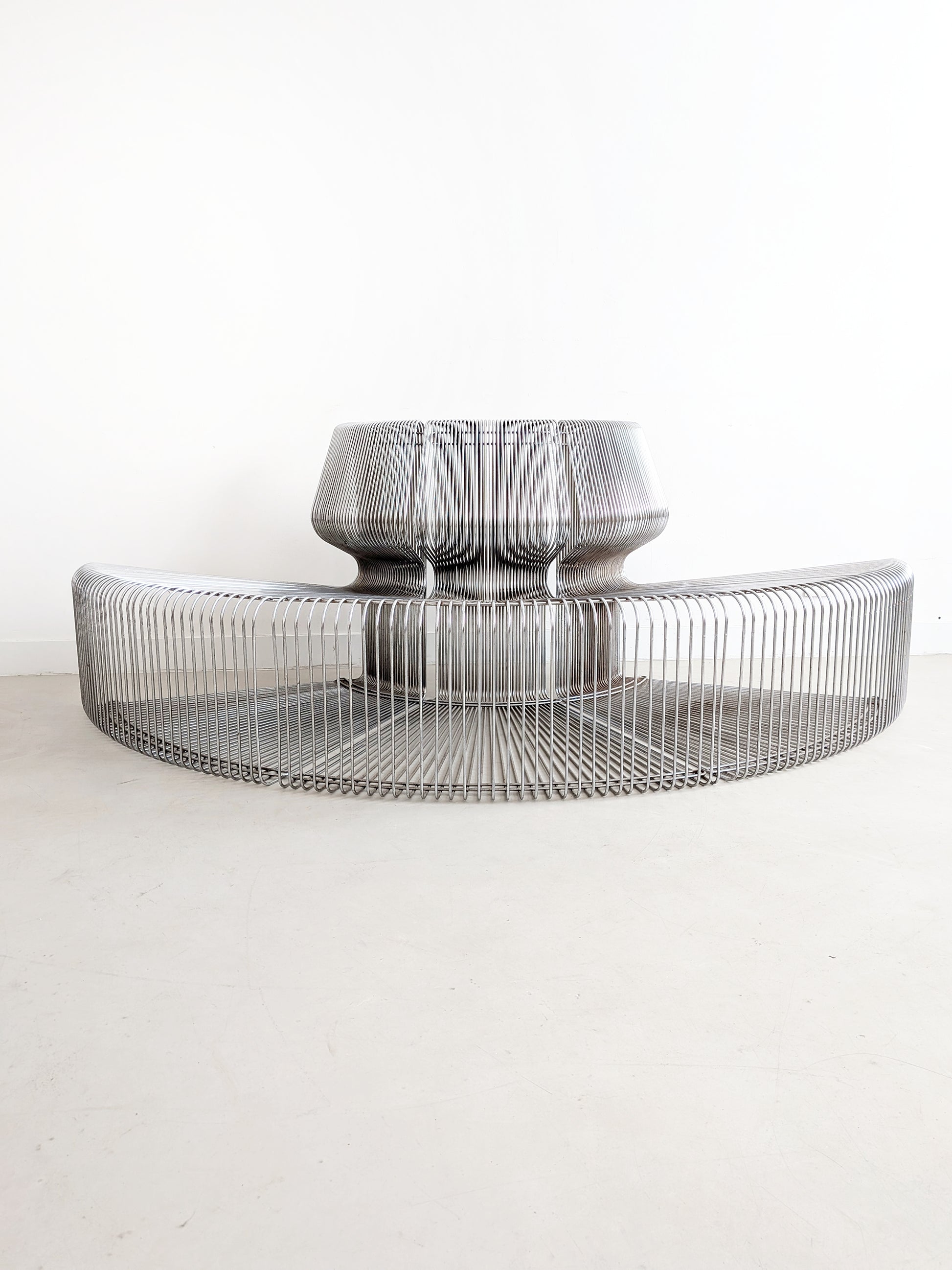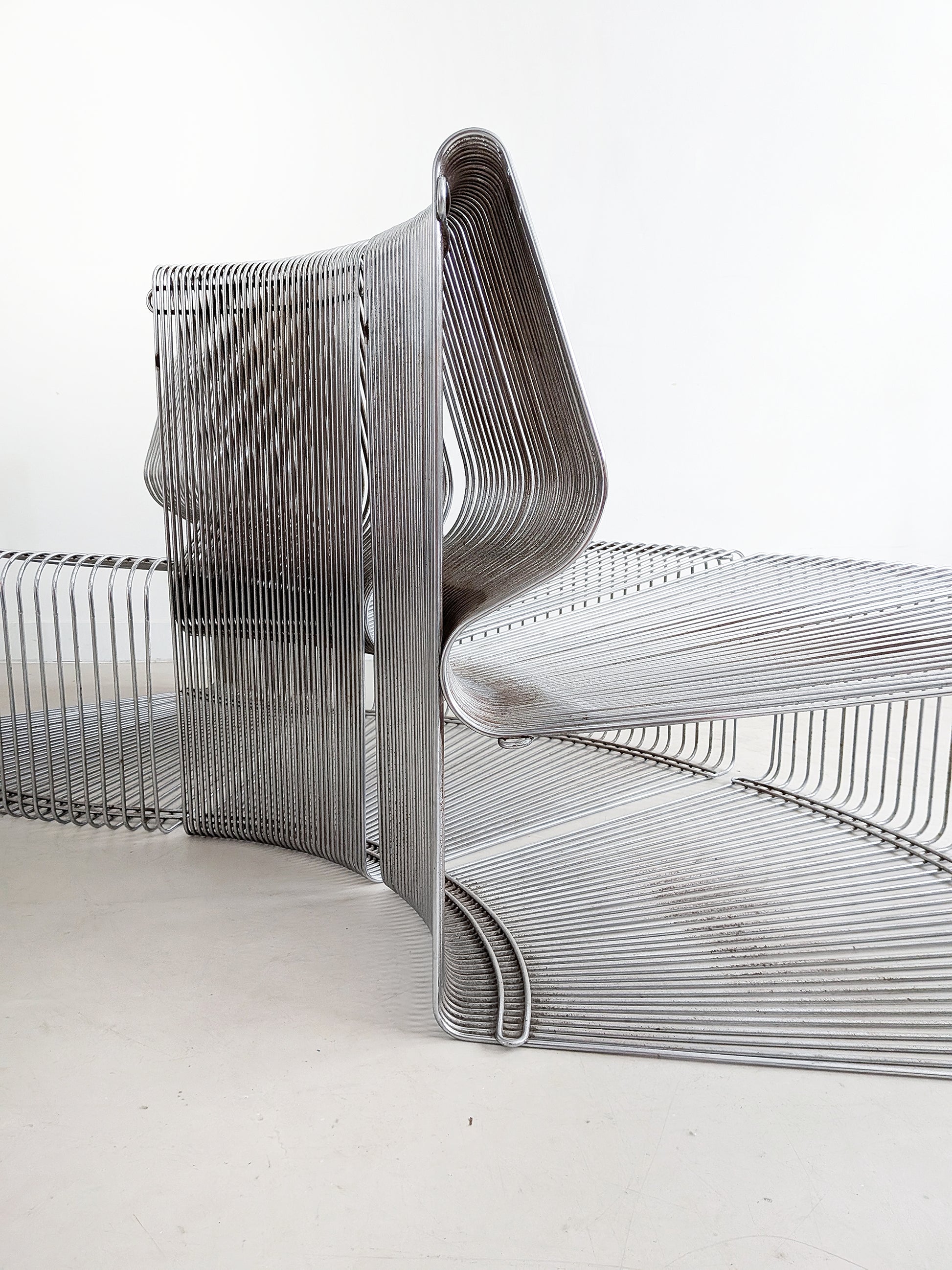 The Pantonova system, designed by Verner Panton in 1971, consists of 3 different kinds of seating modules: 'Linear', 'Concave' and 'Convex'. All modules can be used individually, as an elegant accent chair, or they can be combined into various organic shapes. We have 3 'Concave' modules available, from the early 1980s. Price is for the set. Please note that the Pantonova system is still in production today, with retail prices starting at €1.650 per element.