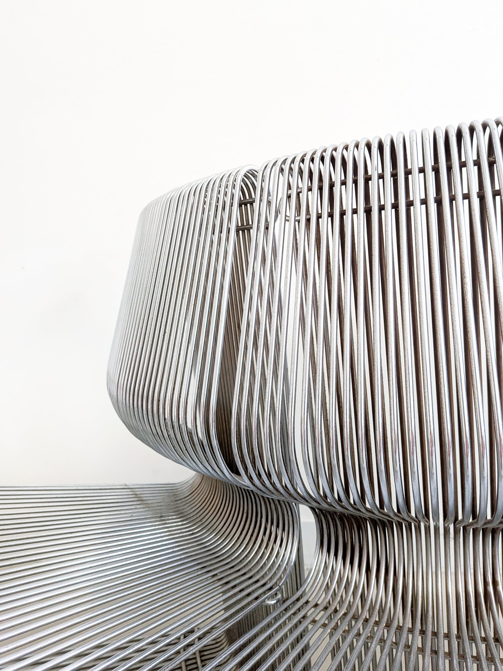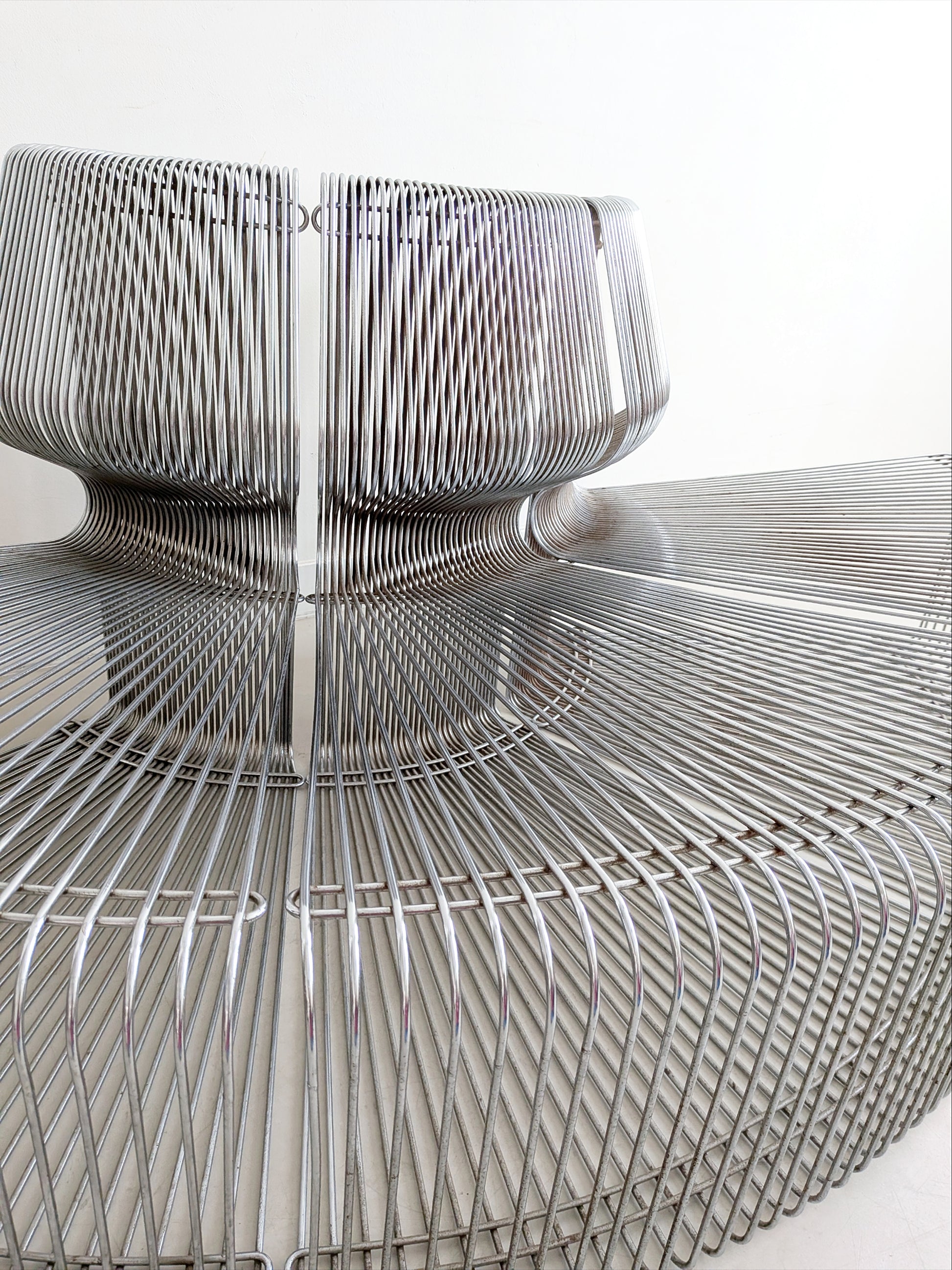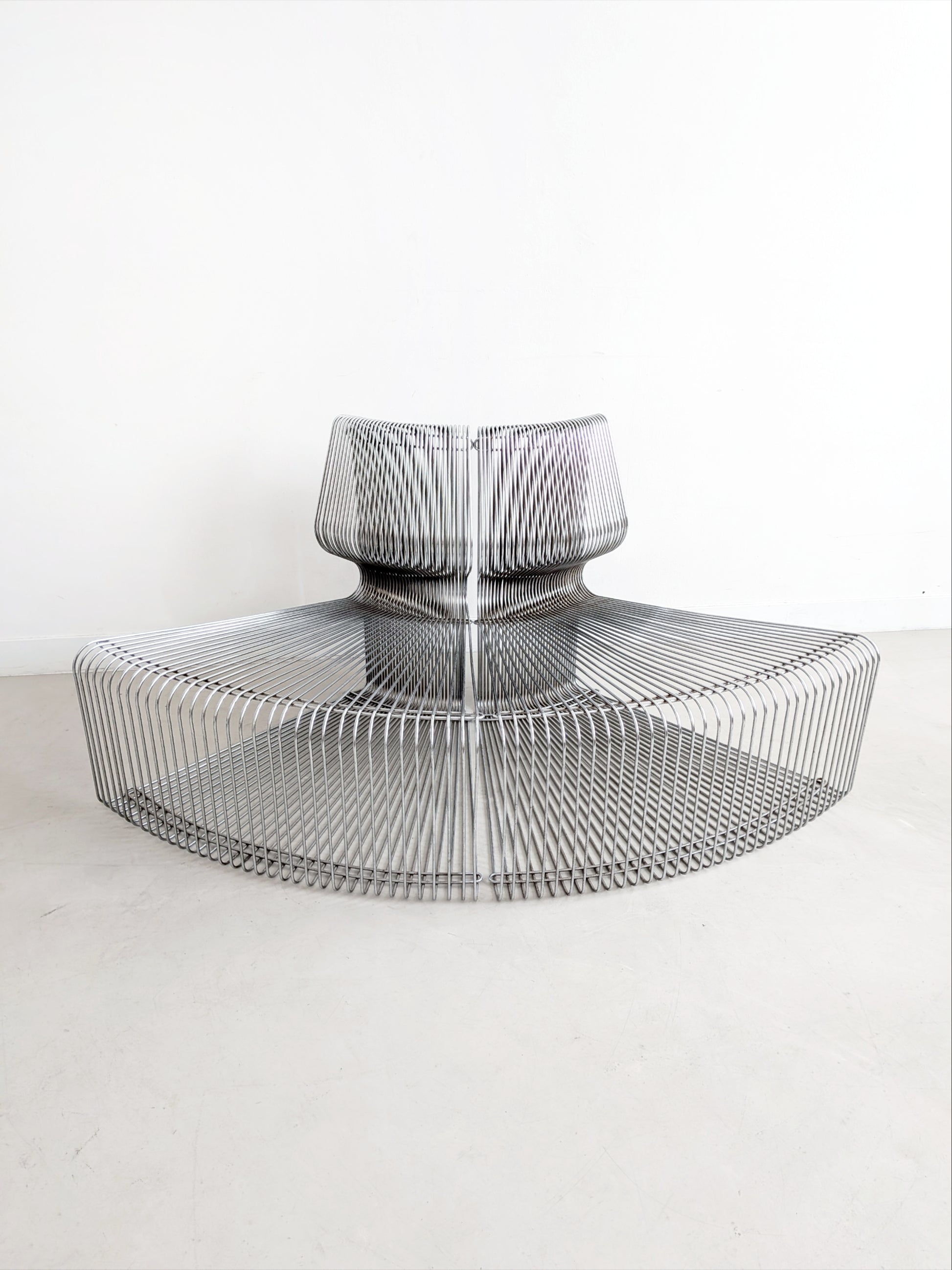 The Pantonova system, designed by Verner Panton in 1971, consists of 3 different kinds of seating modules: 'Linear', 'Concave' and 'Convex'. All modules can be used individually, as an elegant accent chair, or they can be combined into various organic shapes. We have 3 'Concave' modules available, from the early 1980s. Price is for the set. Please note that the Pantonova system is still in production today, with retail prices starting at €1.650 per element.