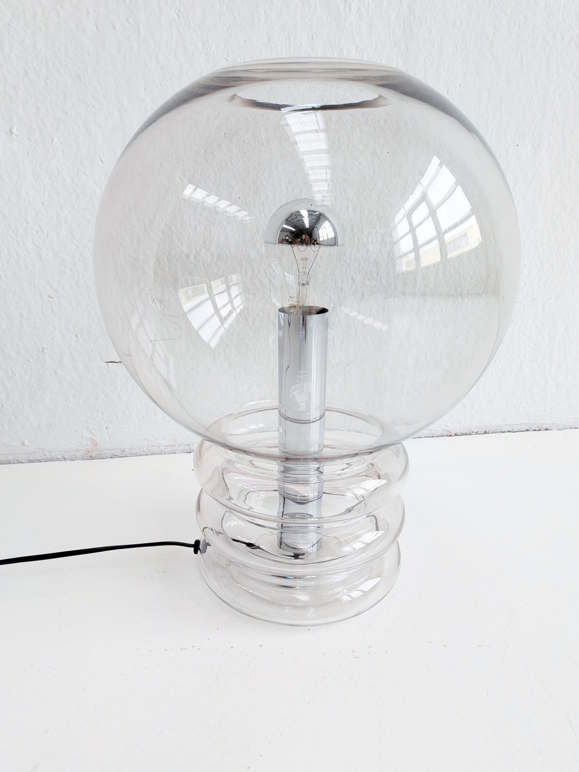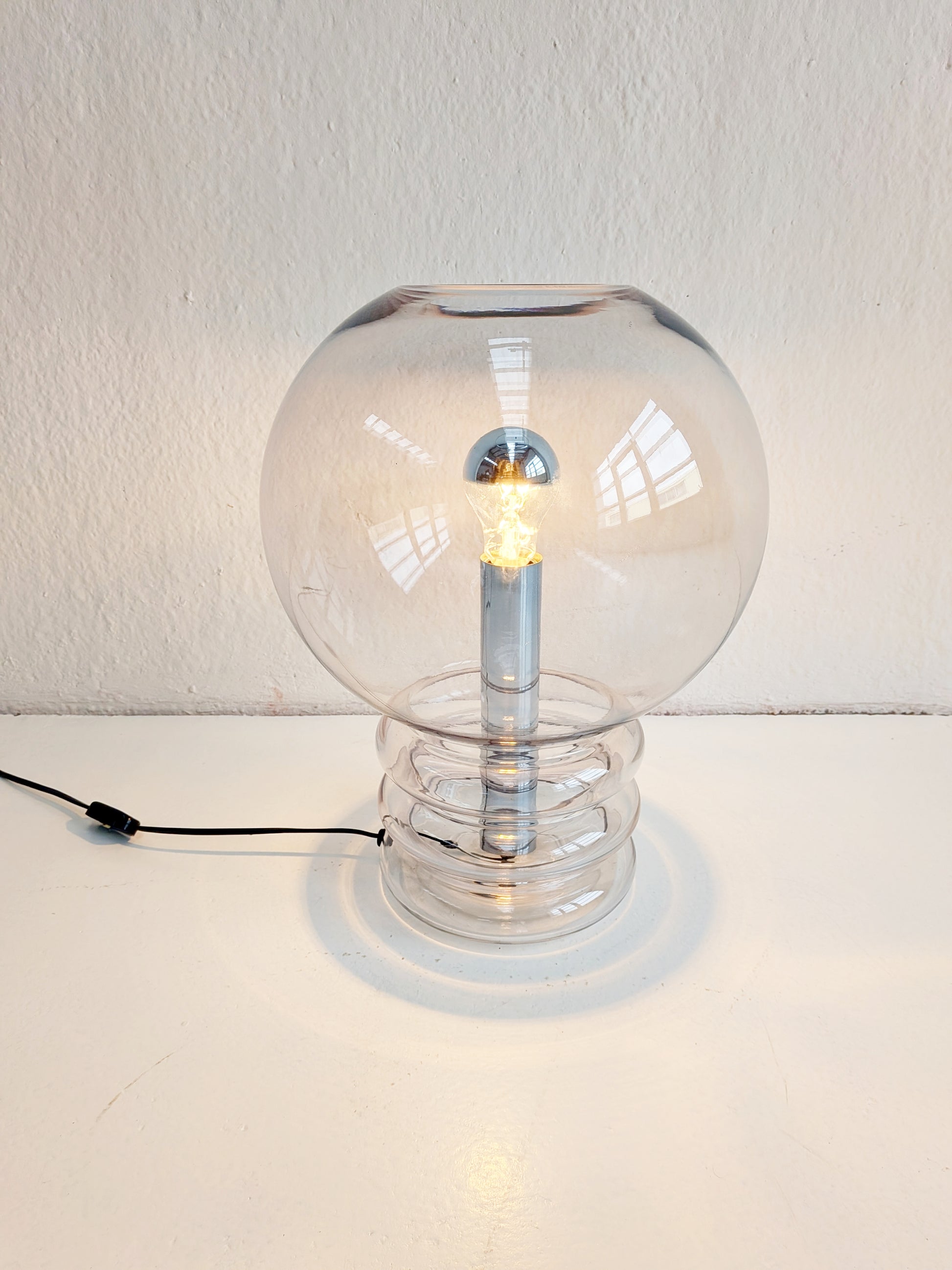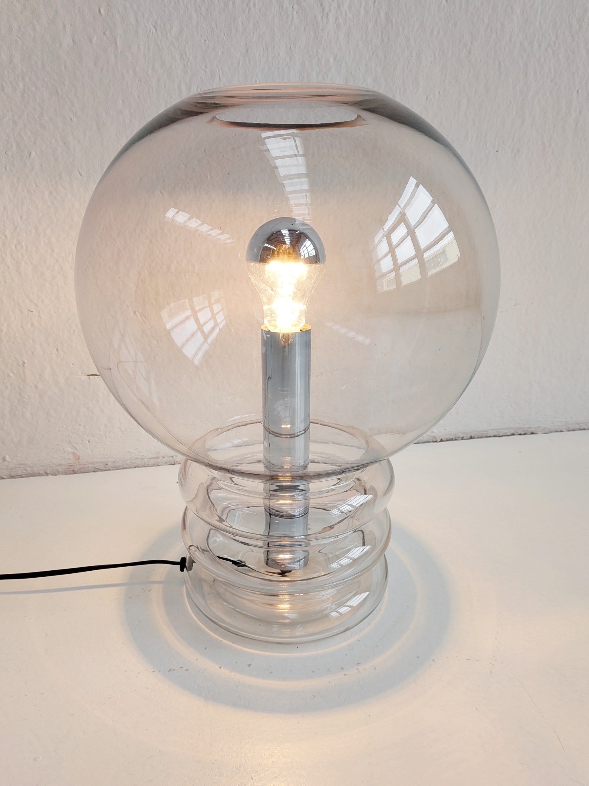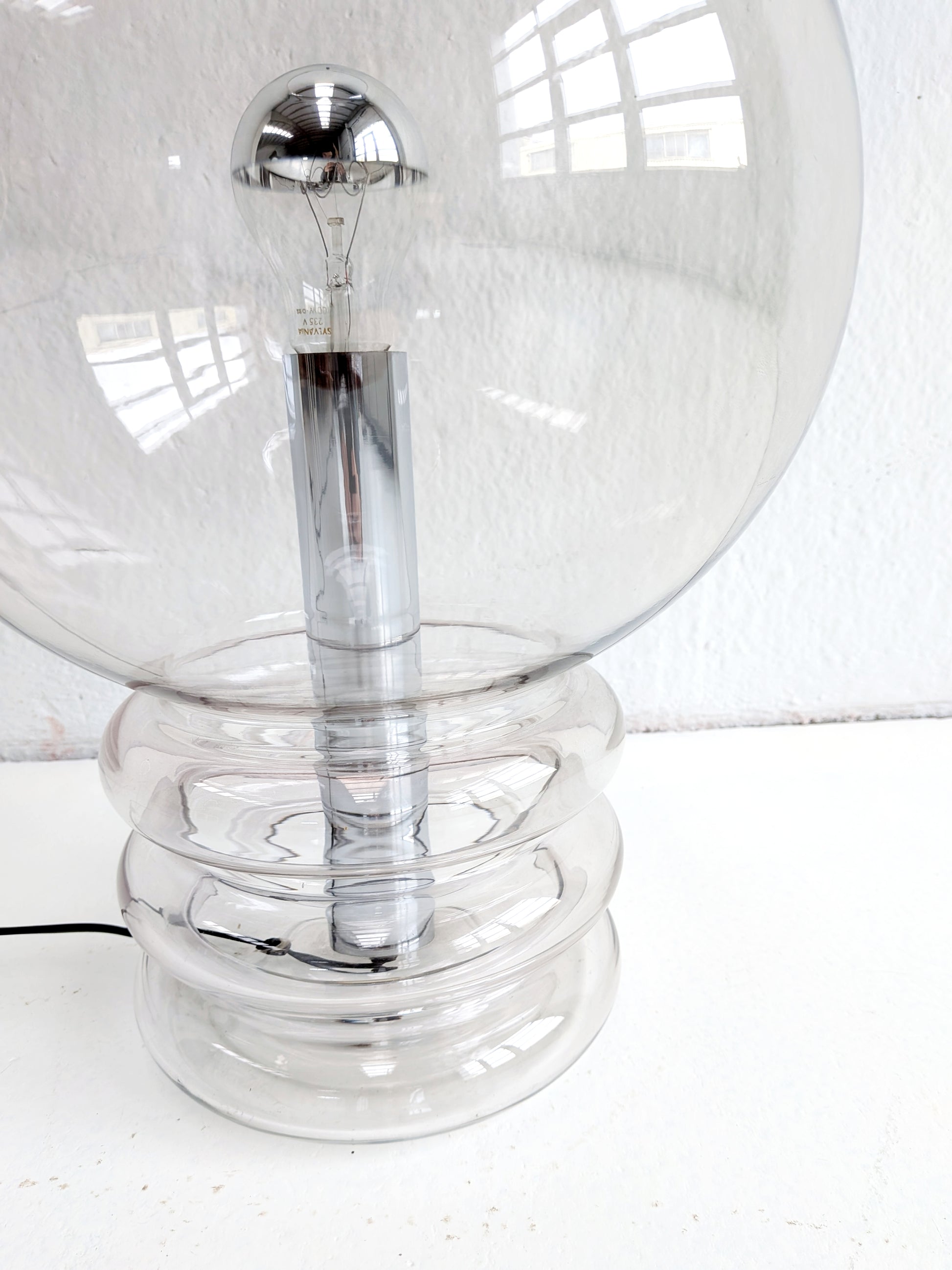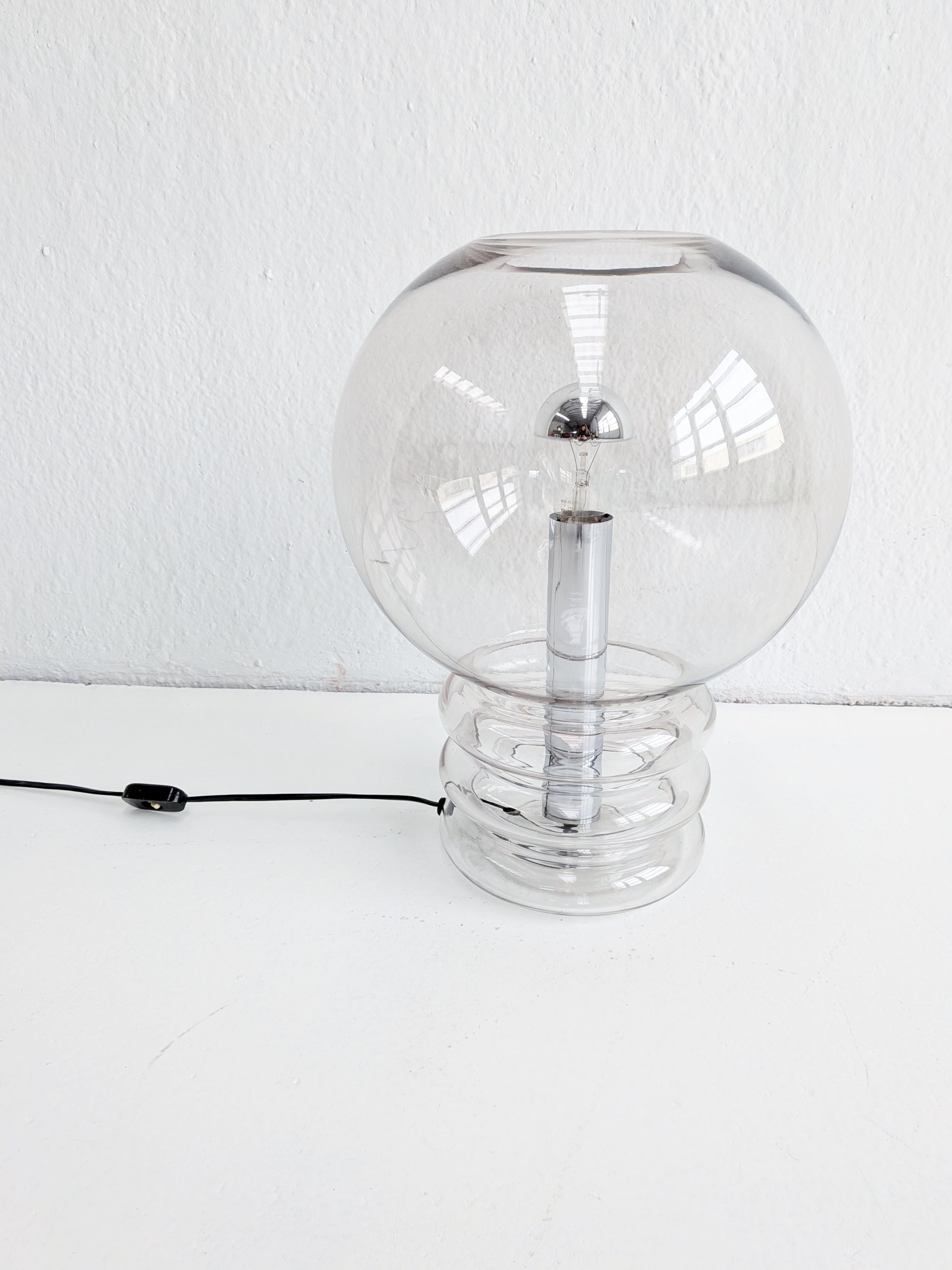 XL 'model 6037' table lamp by Glashütte Limburg in handblown, smoked glass with chrome base. Due to its exceptional height (46cm), this table lamp can also be used as a floor lamp.